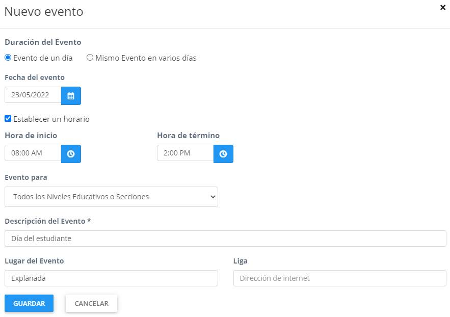 - Si se desea agregar uno nuevo, hacer "clic" en la opción Nuevo Evento.