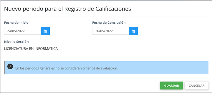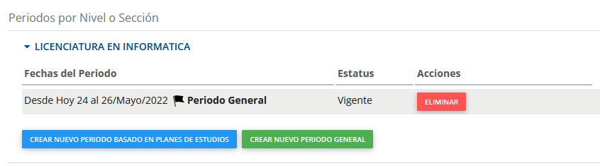 - Si se desea eliminar el Periodo General hacer "clic" en la opción [Eliminar].