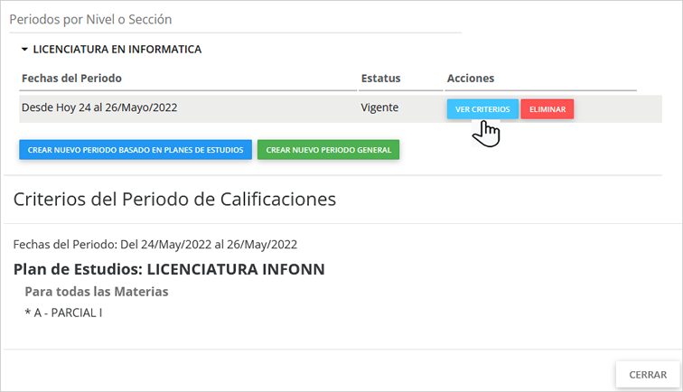 Apertura de Periodo Basado en Planes de Estudio de Registro de