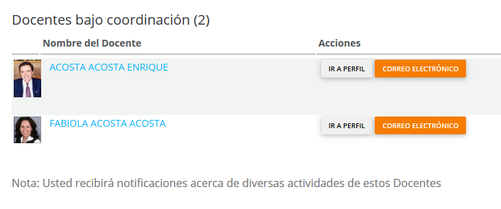 - El sistema mostrará una lista con los Docentes que fueron agregados a la coordinación del usuario.