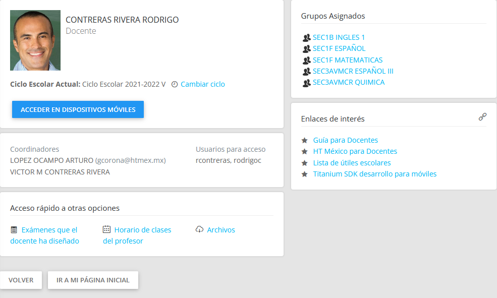 - Si se desea conocer el perfil del Docente hacer "clic" en la opción [Ir a Perfil].