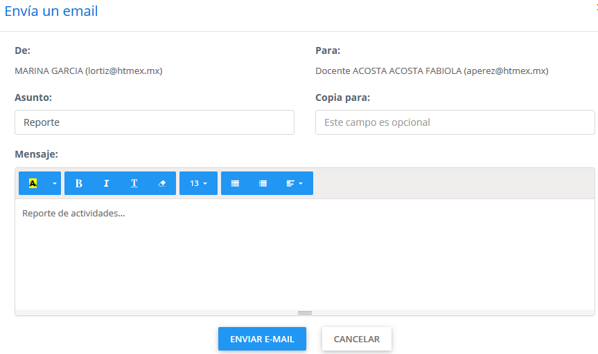 - Si se desea enviar un correo electrónico hacer "clic" en la opción [Enviar E-Mail].