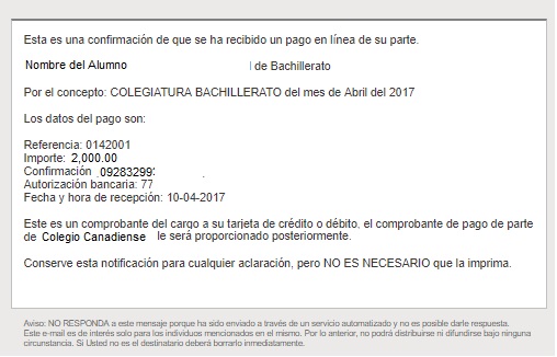 La plataforma enviará por correo notificaciones de eventos pagos en línea que realicen los estudiantes o padres desde la plataforma.