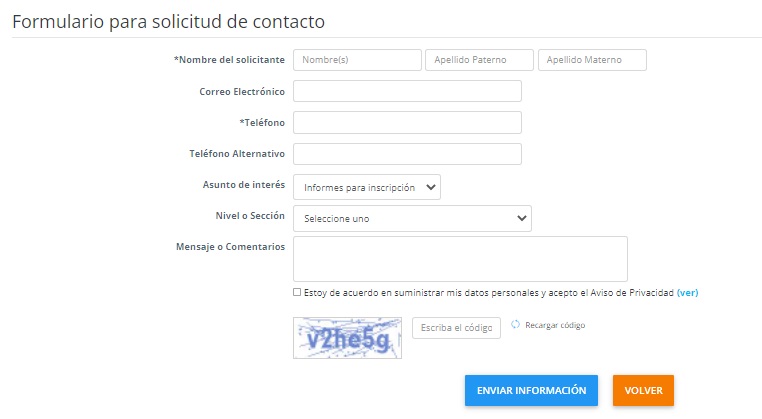 Por ejemplo, se mostrará el aviso de privacidad en la solicitud de contacto, como se muestra en la siguiente imagen: