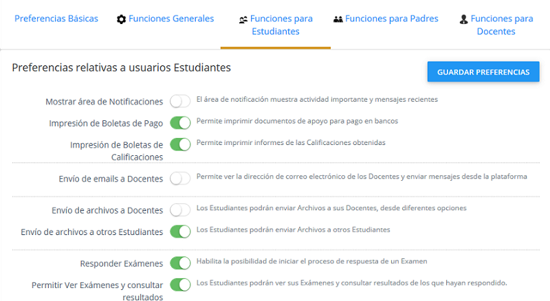 Preferencias para Usuarios Estudiantes
