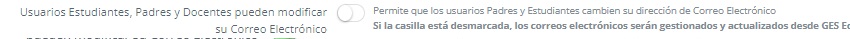 - Activar la opción usuarios Estudiantes, Padres y Docentes pueden modificar su correo electrónico de la sección preferencias globales.