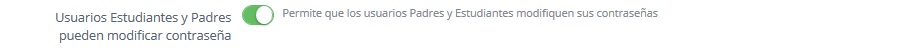 - Activar la opción Usuarios Estudiantes y Padres pueden modificar contraseña de la sección preferencias globales.