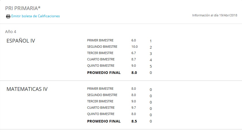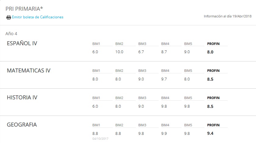 La forma vertical mostrará las calificaciones como en la siguiente imagen se muestra: