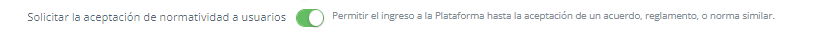 - Activar la opción Solicitar la aceptación de normatividad a usuarios.