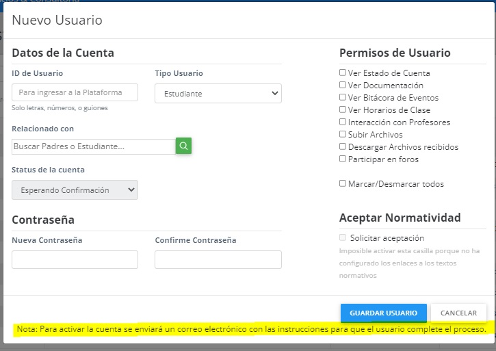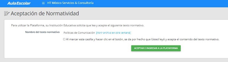 Si el usuario requiere que al inciar sesión un estudiante acepte la nortavidad previamente configurada: