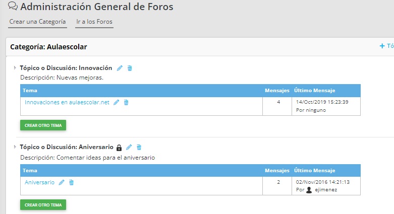 El usuario podrá visualizar desde su perfil la administración general de foros.
