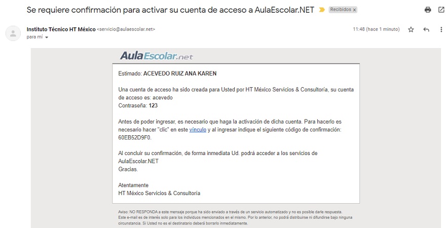 Al registrar los usuarios Estudiantes y padres la plataforma enviará un correo electrónico del usuario con las instrucciones para completar el proceso.