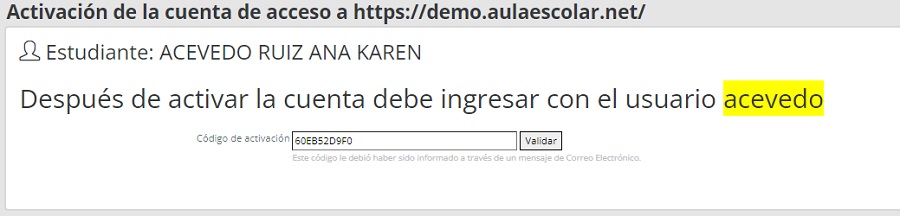 Agregar el código de activación y hacer "clic" en el botón validar.