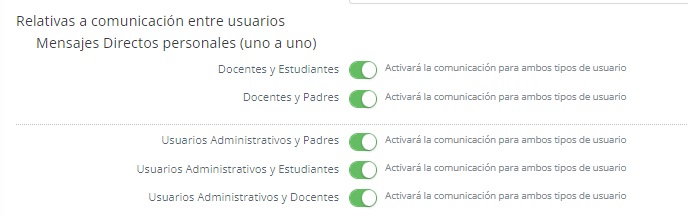 Esta opción permitirá al usuario administrador activar la comunicación para cada tipo de usuario.