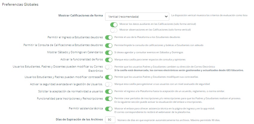 Esta opción permitirá al usuario administrador configurar las Preferencias Globales de la plataforma.