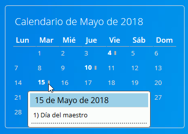 - Si se desea mostrar el calendario mensual de eventos deberá activar la opción siguiente.