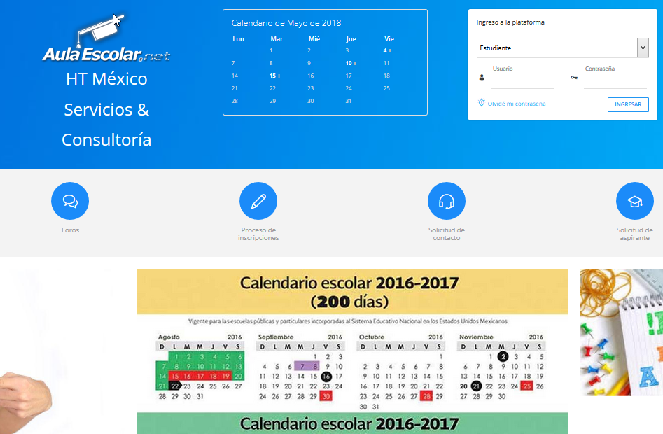 - El usuario visualizará el formato de inscripciones en la página principal de la plataforma como se muestra en la siguiente imagen: