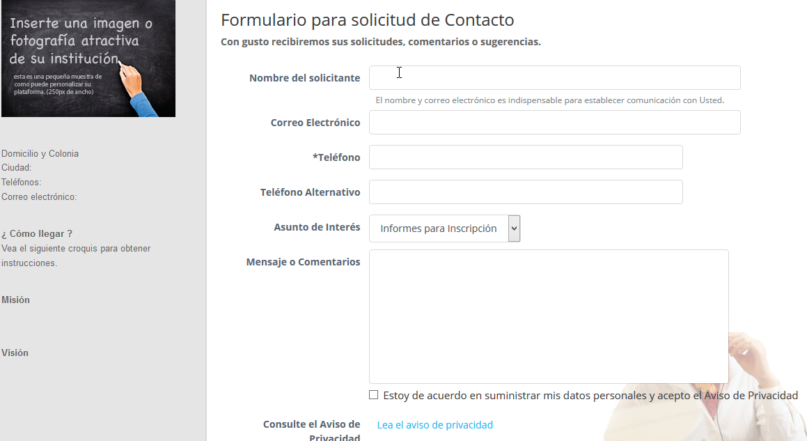 - Para mostrar la Solicitud de Contacto de la página principal deberá activar la forma de contacto.