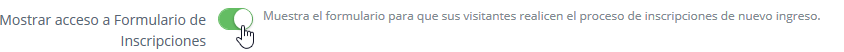 - Marque la casilla de la opción Mostrar acceso a formulario de inscripciones.