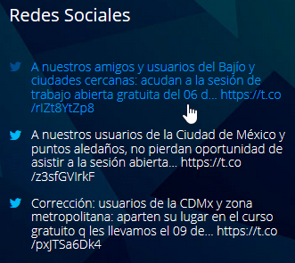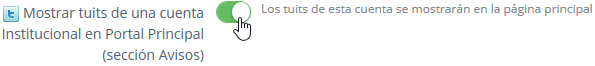 - Activar la opción mostrar tuits de una cuenta institucional en portal principal (Sección avisos).
