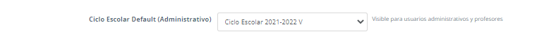 - Debajo del ciclo escolar default (Administrativo) se encuentra la opción ciclo escolar default por cada nivel o sección