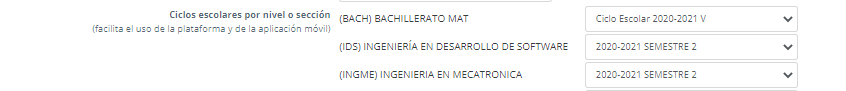 - Seleccione el ciclo escolar para los estudiantes de acuerdo con el nivel educativo y podrá visualizar cuando inicien sesión.