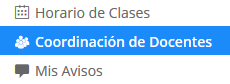 Esta opción permitirá visualizar la opción Coordinación de Docentes en el menú principal del Docente.