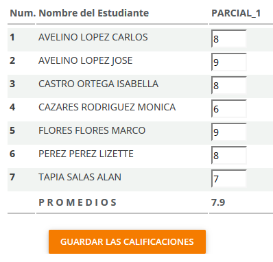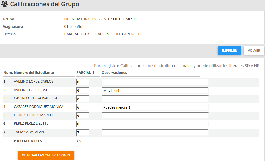 Esta opción permitirá que el Usuario Docente capture Calificaciones del Grupo.