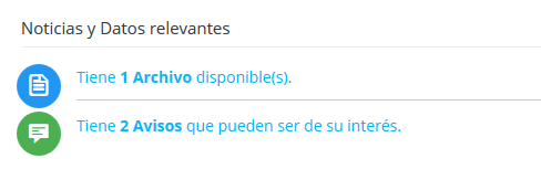 Esta opción activará en pantalla el área de mensajes y Datos Relevantes al ingresar el Usuario Docente.
