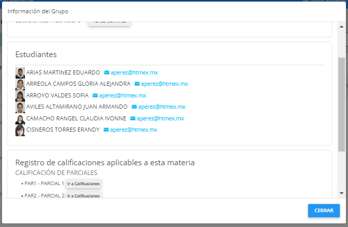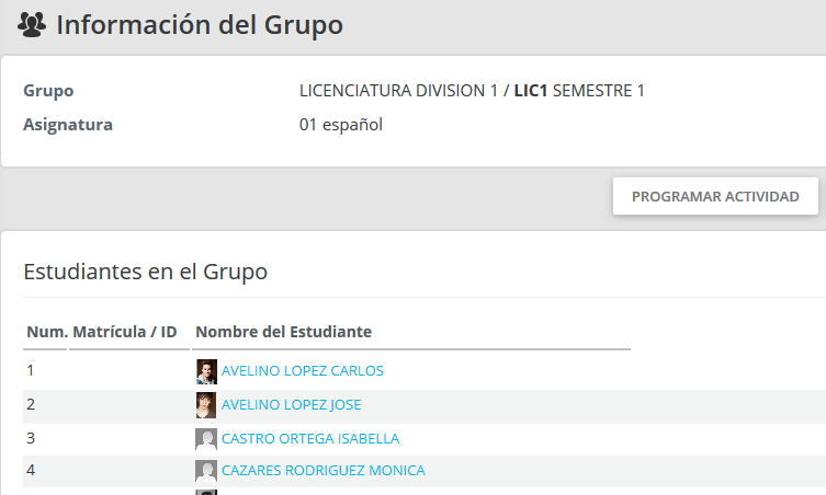 Esta opción activará en la opción Información del Grupo el enlace para consultar datos básicos del Estudiantes.
