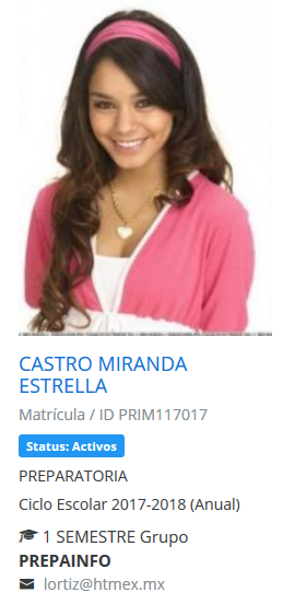 Al hacer "clic" sobre el Nombre del Estudiante se mostrarán los datos básicos.