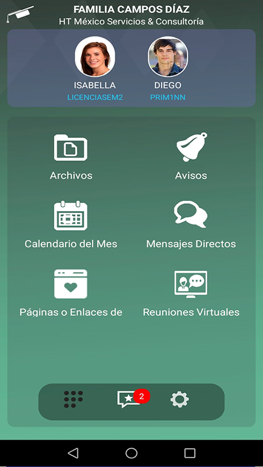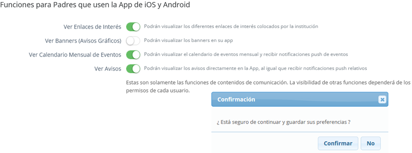 Para la visualización de estas opciones es necesario la marcación de las opciones mencionadas anteriormente, posteriormente el padre podrá ver lo siguiente.