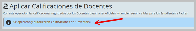 Aparecerán los eventos de Calificaciones registrados.