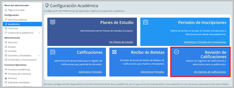 Una vez que los docentes han registrado las Calificaciones en los periodos asignados, el administrador podrá autorizarlas desde la configuración académica.