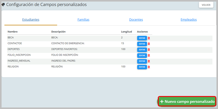 Se debe hacer clic en el botón "+ Nuevo campo personalizado".