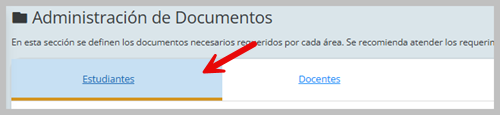 En la sesión del panel de Estudiante está disponible la administración de documentos de cada estudiante.