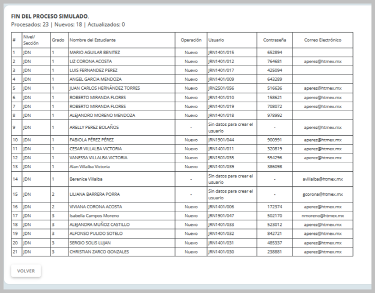 - Para finalizar hacer clic en el botón de Crear Usuarios en bloque.